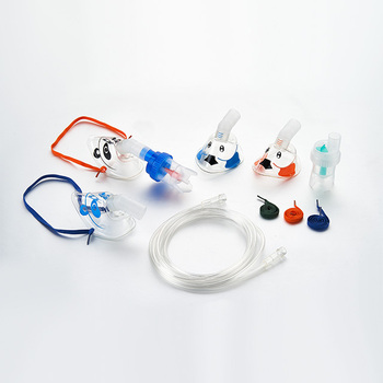 เครื่องพ่นละอองยาพีวีซีสไตล์การ์ตูนสำหรับเด็กหน้ากากออกซิเจนเครื่องมือผ่าตัดท่อเชื่อมต่อแบบหมุนได้